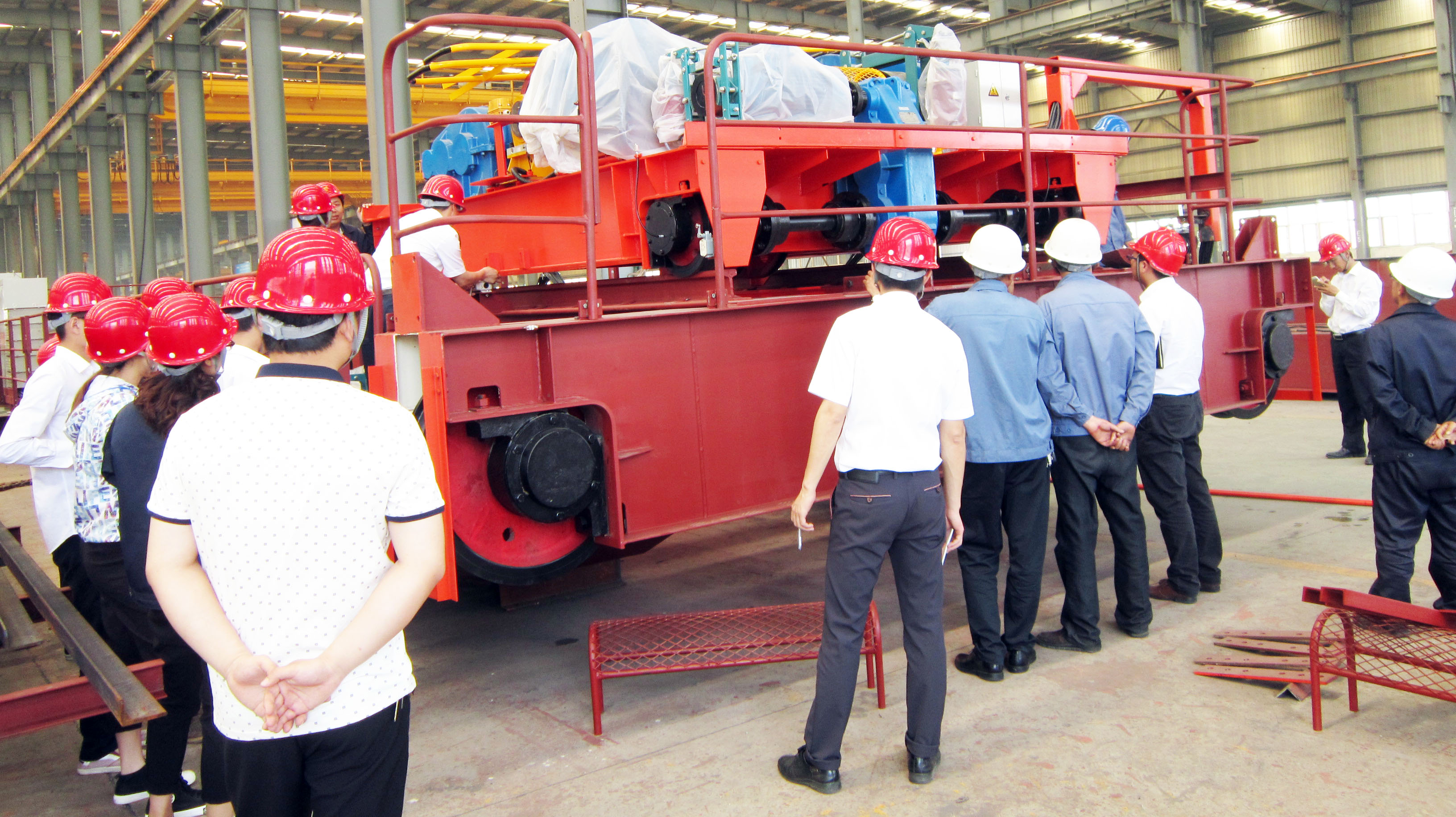 5月21日上午,大方公司總經(jīng)理胡旭、生產(chǎn)副總李曉寧帶領(lǐng)技術(shù)部、質(zhì)量保障部和生產(chǎn)班組長對已經(jīng)制作完畢的QD32/5t-22.6m雙梁起重機進行場內(nèi)組裝驗收、評審。胡總和大家一起來到現(xiàn)場認真查看評審樣機,評審過程中發(fā)現(xiàn)的問題大家相互討論,從電纜橋架的合理布置到電器柜底座的安裝,從小車運行的極限位置到限位開關(guān)、緩沖器的位置調(diào)整,從小車導電架的高度到小車安全底座的尺寸是否符合圖紙等等,大家都認真討論,暢所欲言,現(xiàn)場提出自己的整改意見。不知不覺兩個小時就過去了,評審現(xiàn)場的氣氛還是那么的濃烈,大家積極測量、實驗和討論,**終提出了近20條提升質(zhì)量的改進建議。