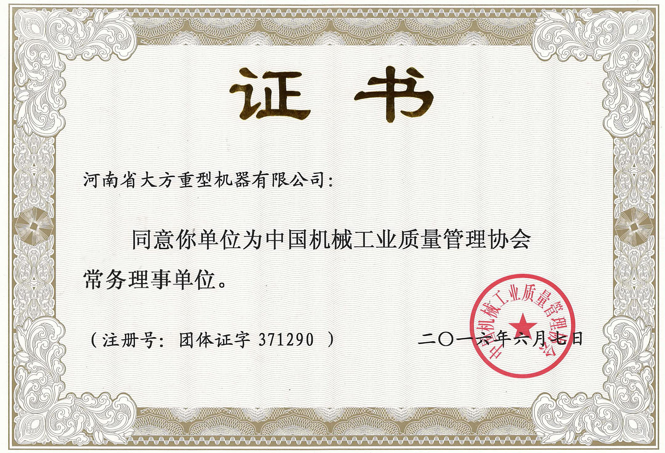 熱烈慶祝大方重機(jī)成為中機(jī)質(zhì)協(xié)常務(wù)理事單位