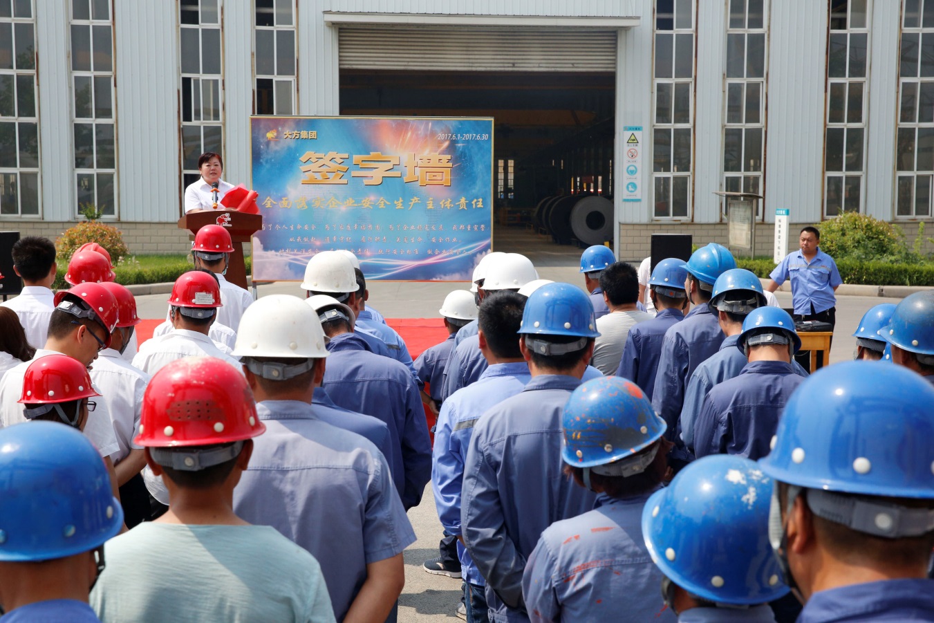 為進一步響應(yīng)國家安全生產(chǎn)月活動精神,把安全生產(chǎn)責(zé)任和安全生產(chǎn)方針落實到實處,營造“安全生產(chǎn),人人有責(zé)”的濃厚氛圍,2017年5月31日上午10點,大方集團隆重開展了以“全面落實企業(yè)安全生產(chǎn)主體責(zé)任”為主題的安全月啟動大會儀式暨安全承諾簽字儀式活動,吹響了夏季安全生產(chǎn)的號角??偨?jīng)理胡旭、副總經(jīng)理郭景陽等公司高層領(lǐng)導(dǎo)、各部門主任級以上人員、專職安全員、生產(chǎn)調(diào)度、質(zhì)檢員、班組長、兼職安全員、班組骨干成員等參加了活動。本次活動由行政綜合部副部長薛鳳燕主持。