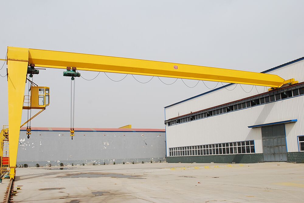 電動葫蘆半門式起重機與CD1、MD1等型號的電動葫蘆配套使用,是一種有軌運行的中小型起重機。單主梁適用額定起重量1-20t,雙主梁適用于額定起重量1~50t,適用跨度12-30米,工作環(huán)境-20℃- 40℃內(nèi)。本產(chǎn)品為一般用途起重機,多用于露天場所及倉庫的裝卸或抓取物料。根據(jù)其結(jié)構(gòu)特點,我公司將其分為以下幾種不同的型號: