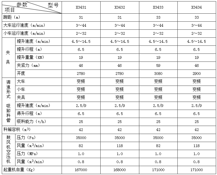 該機(jī)是預(yù)焙燒陽極車間專用起重機(jī),它的主要用途是用夾鉗將鏈?zhǔn)捷斔蜋C(jī)上的生碳塊裝入焙燒爐坑內(nèi);用卸料管將料倉中的填充料填人爐坑內(nèi);用吸料管將爐內(nèi)的填充料吸出,再利用夾具將爐內(nèi)熱炭塊運(yùn)到鏈?zhǔn)捷斔蜋C(jī)上。將炭塊運(yùn)到指定地點(diǎn),在小車上裝有輔助吸料管可清掃煙道、排除粉塵。